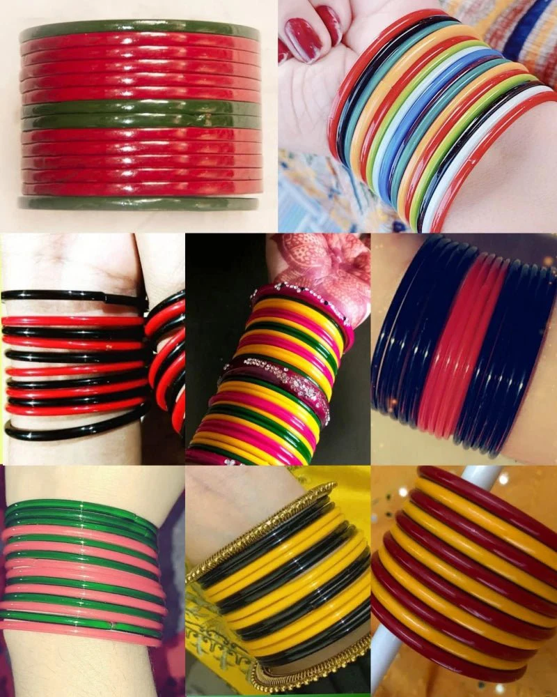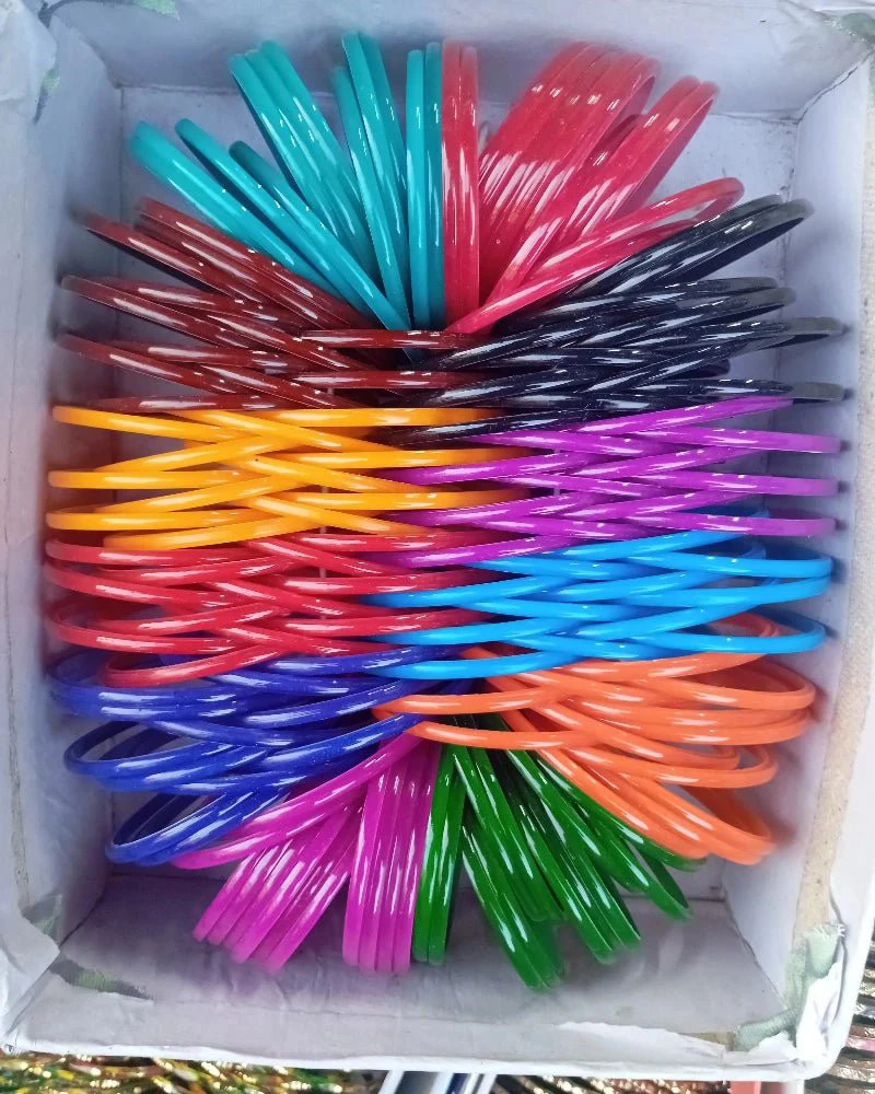 Each set includes a vibrant mix of glossy bangles in eye-catching shades like red, green, blue, orange, pink, black, and more—perfect for pairing with casual outfits or traditional wear. Lightweight and comfortable, these bangles are easy to wear all day without irritation.